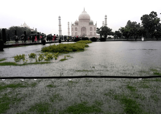 Taj Mahal, Indias heritage also came in the target of the rains, causing water to leak inside the monument. In response to the leakage, an investigation was initiated. But no damage seen on the main dome, even though the garden is next to the Taj Mahal is flooding.
