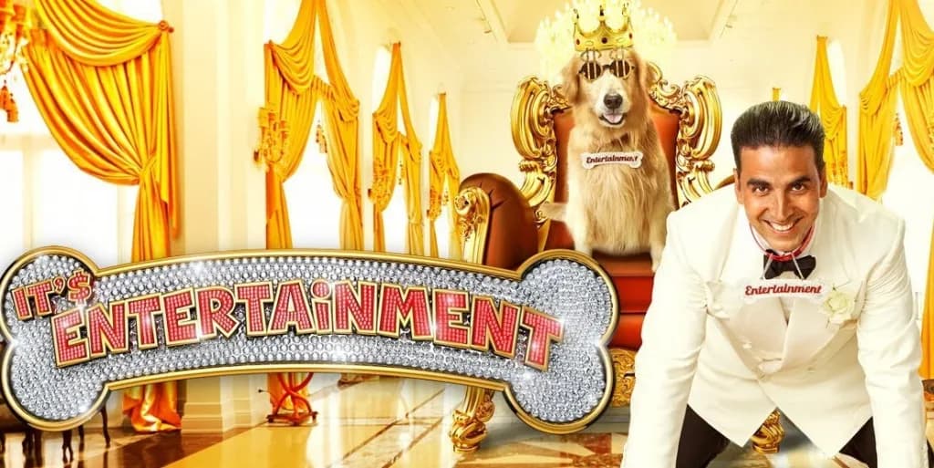 Its Entertainment is a Bollywood comedy movie directed by Sajid-Farhad, starring Akshay Kumar as Akhil Lokhande. The plot centers on Akhil discovering that his late billionaire father has left his entire wealth to a pet dog named Entertainment.