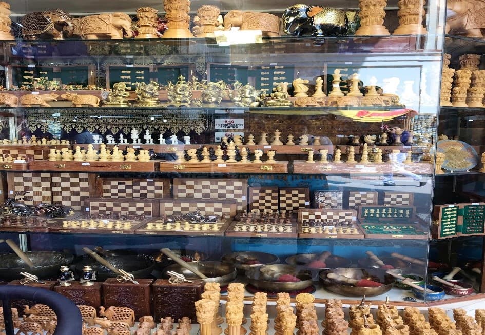 The market is full of shops that sell handicrafts crafted by artisans from all over the country. You can find items like Kutch work bags, Juttis, pashmina shawls, costume jewelery, wall-mounted plates, crockery, and so much more.